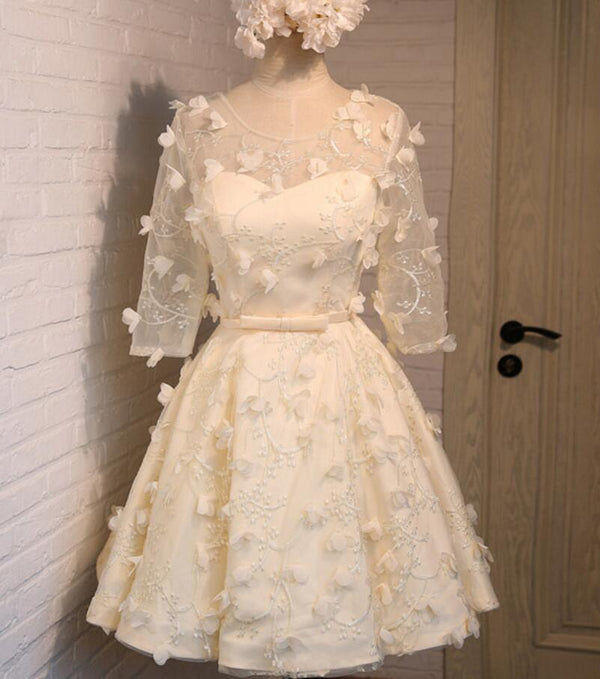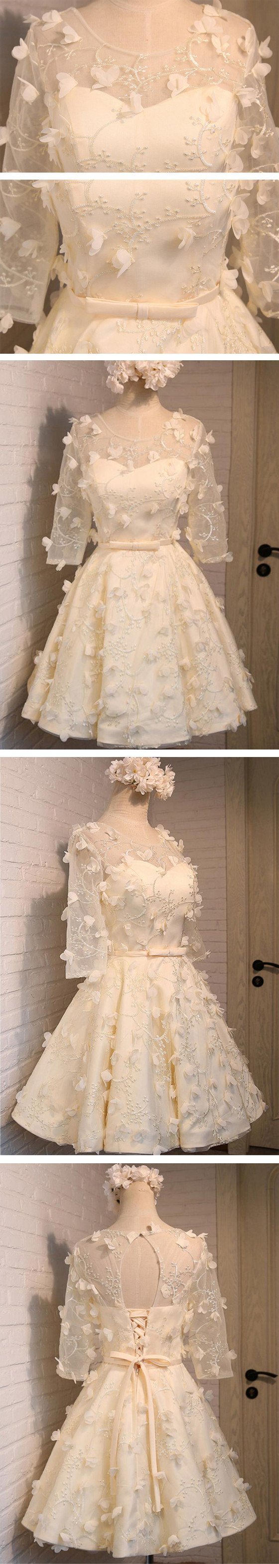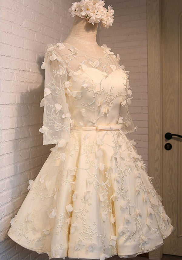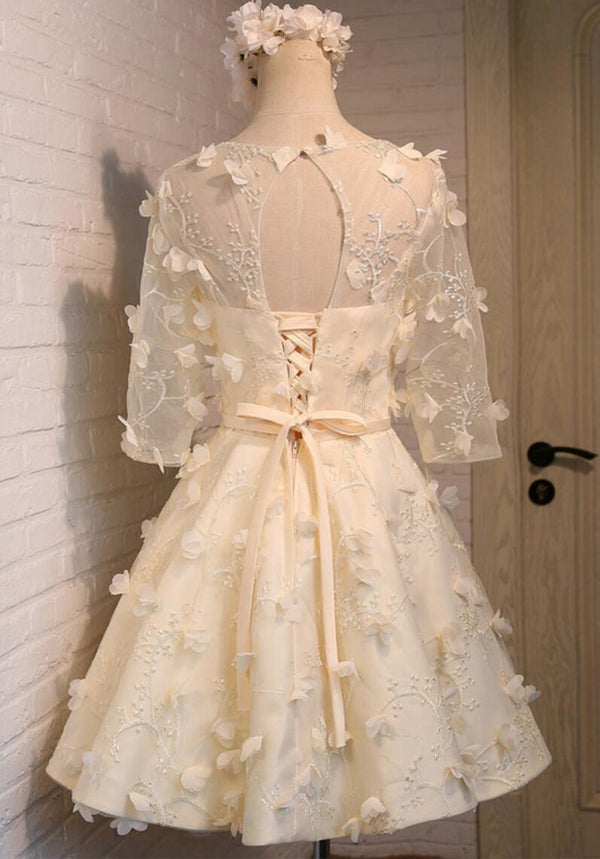 Lace Long Sleeve Open Back Homecoming Prom Dresses, Affordable Short Party Prom Dresses, Perfect Homecoming Dresses, CM282