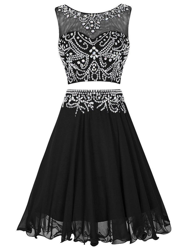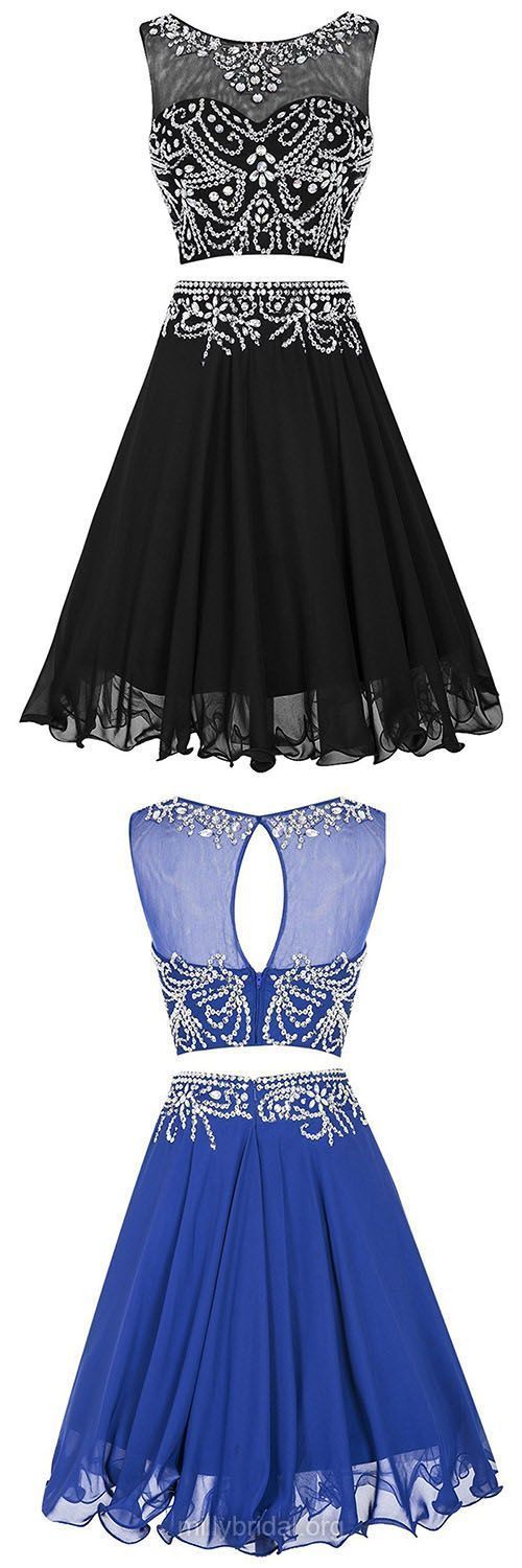 Sexy Two Pieces Beaded Lace Chiffon Homecoming Prom Dresses, Affordabl