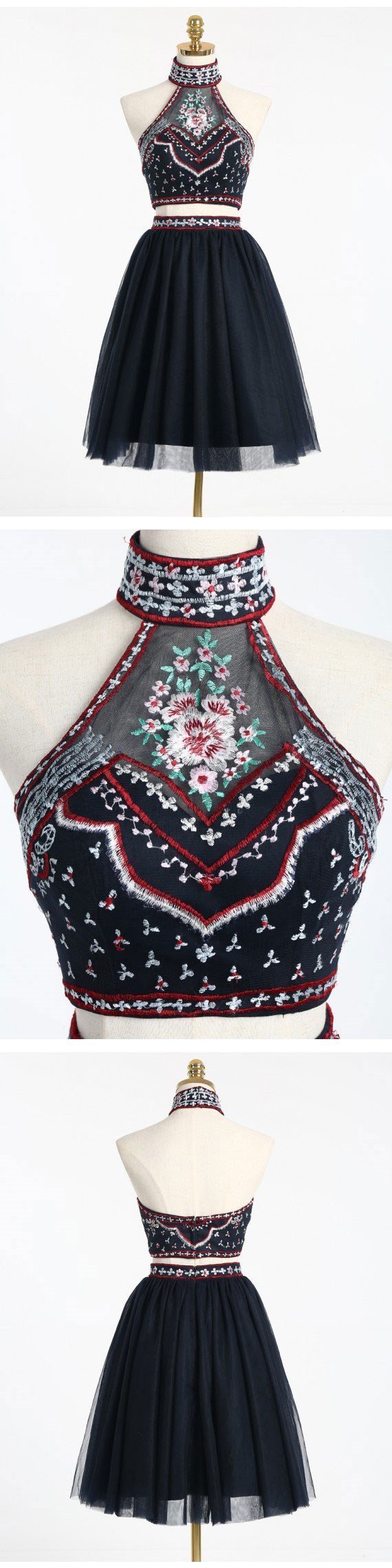 Sexy Two Pieces Navy Blue Lace Short Homecoming Prom Dresses, Affordable Short Party Prom Sweet 16 Dresses, Perfect Homecoming Cocktail Dresses, CM370