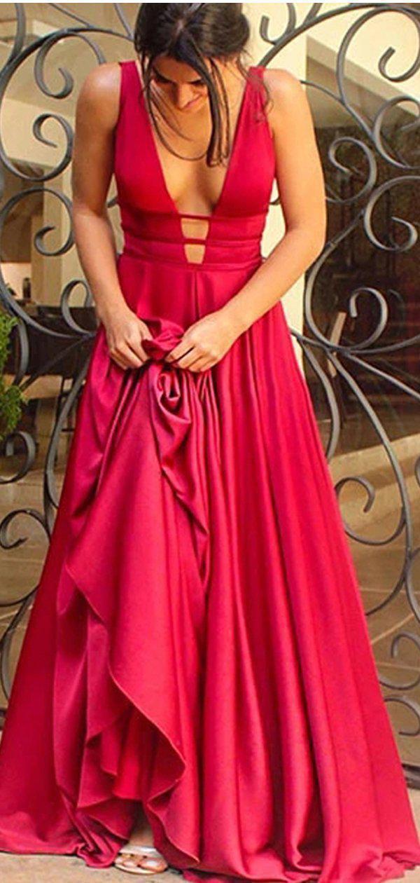 Sexy Backless Red A-line Long Evening Prom Dresses, Evening Party Prom