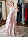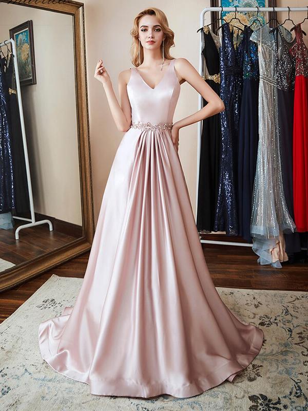 Simple A-line Pink Straps V-neck Long Party Prom Dresses Online,Dance Dresses,12367