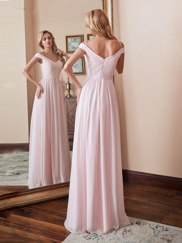 Simple Pink A-line Off Shoulder Spaghetti Straps Long Prom Dresses Online, Dance Dresses,12380