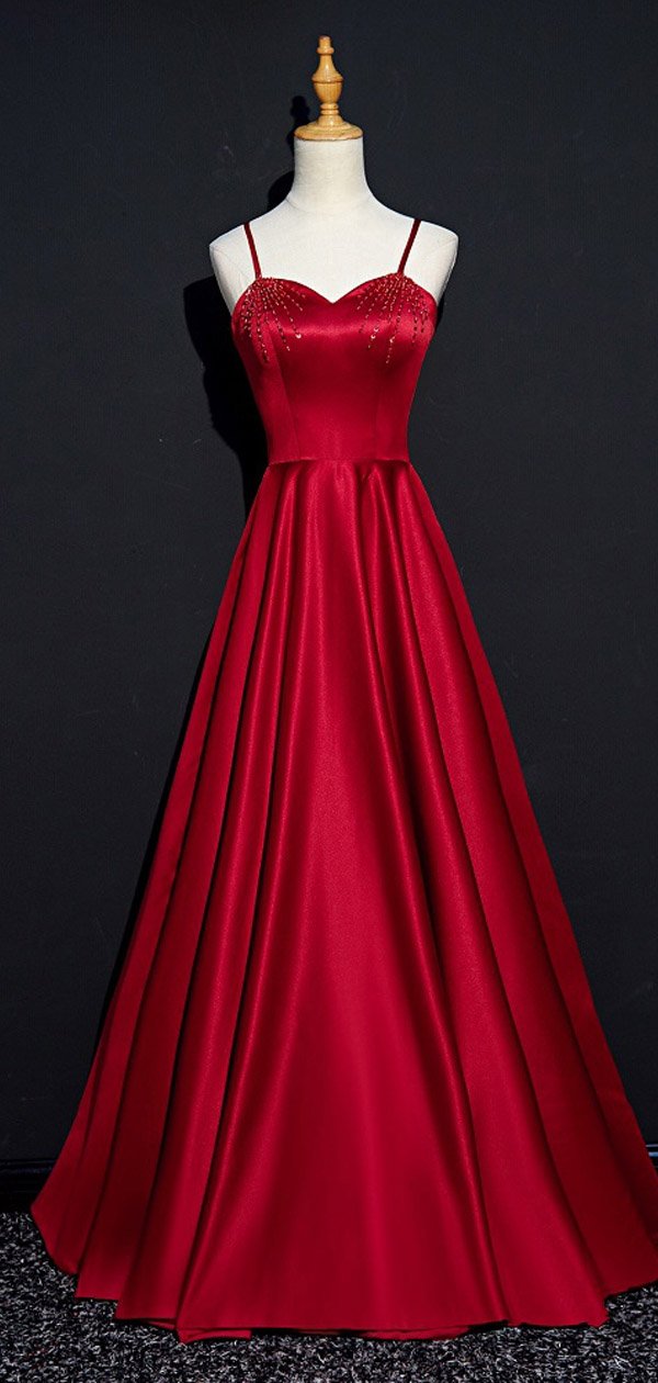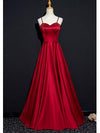 Simple Red A-line Spaghetti Straps V-neck Cheap Long Prom Dresses Online,12455