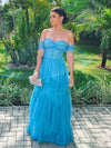 Blue A-line Off Shoulder Maxi Long Party Prom Dresses,Evening Dress,13286