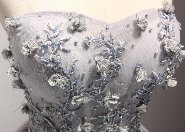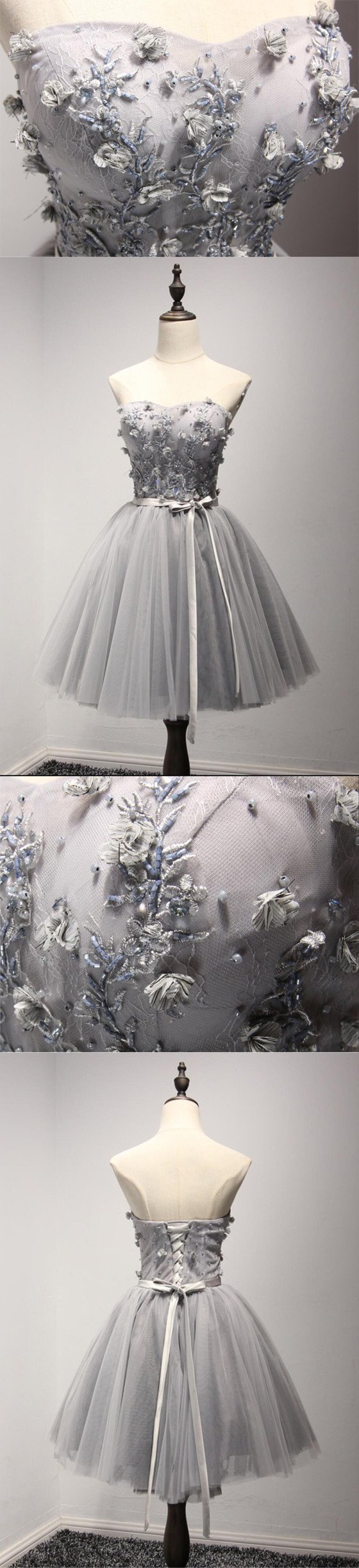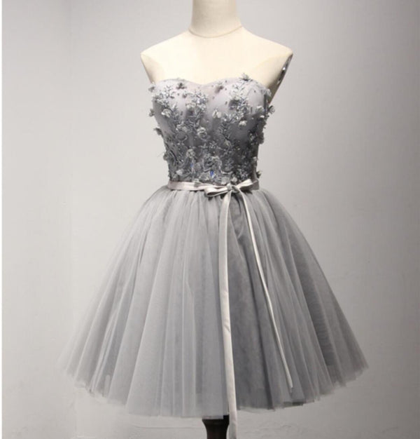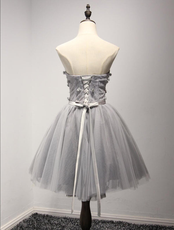 Grey Lace Tulle Short Sweetheart Homecoming Prom Dresses, Short Party Prom Dresses, Graduation Dresses, CM202