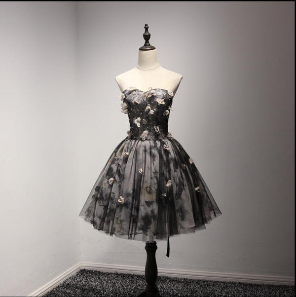 Handmade Flower Black Homecoming Prom Dresses, Little Black Dress, Short Party Prom Dresses, Perfect Homecoming Dresses, CM208