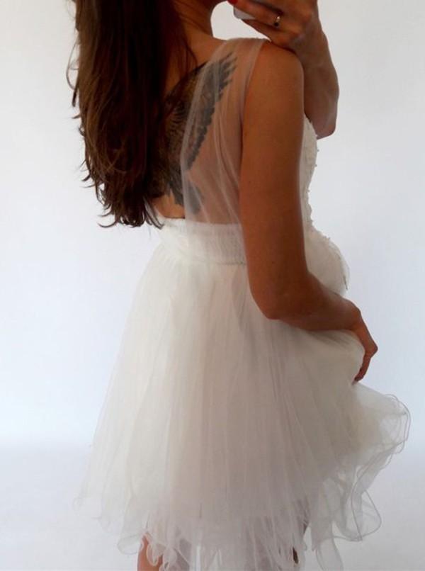 Lace Illusion Cheap White Short Homecoming Dresses Online, CM684