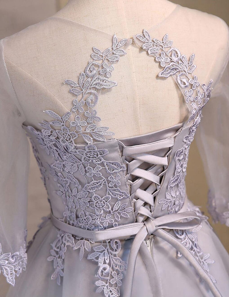 Lace Long Sleeve See Through Open Back Homecoming Prom Dresses, Affordable Short Party Prom Dresses, Perfect Homecoming Dresses, CM284