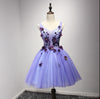 Purple V Neckline Two Straps Beaded Homecoming Prom Dresses, Affordable Short Party Corset Back Prom Dresses, Perfect Homecoming Dresses, CM212