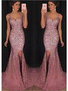 Sparkly Mermaid Dusty Rose Side Slit Cheap Long Prom Dresses Online,12433
