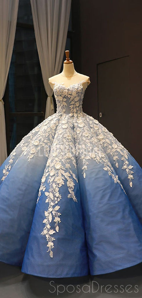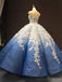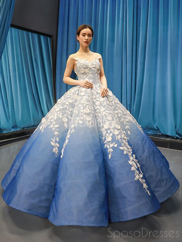 Jewel Neck Ombre Blue Ball Gown Evening Prom Dresses, Evening Party Prom Dresses, 12254