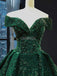 Off Shoulder Emerald Green Sequin Long Evening Prom Dresses, Evening Party Prom Dresses, 12234