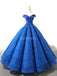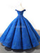Off Shoulder Sparkly Blue Ball Gown Evening Prom Dresses, Evening Party Prom Dresses, 12262