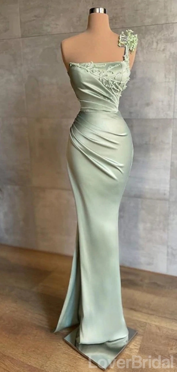 Sage Mermaid One Shoulder Cheap Long Prom Dresses,Evening Party Dresses,12680