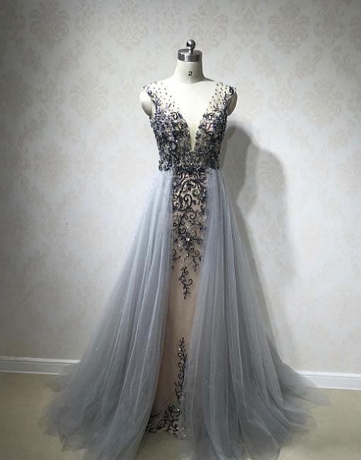 Sexy Deep V Neckline Heavily Beaded Long Evening Prom Dresses, Popular Cheap Long 2018 Party Prom Dresses, 17250