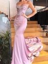 Sexy Mermaid Pink Spaghetti Straps V-neck Cheap Long Prom Dresses Online,12486