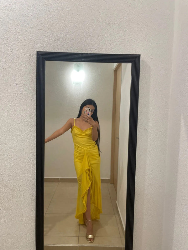 Sexy Yellow Mermaid Long Party Prom Dresses To Impress,Evening Dress,13468