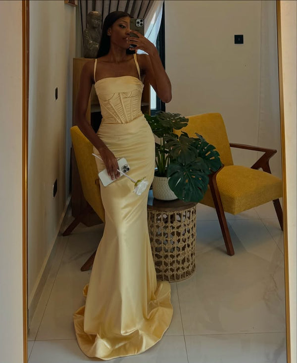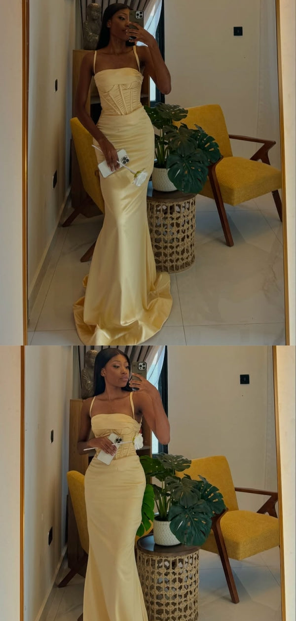 Sexy Yellow Mermaid Long Party Prom Dresses To Impress,Evening Dress,13484