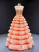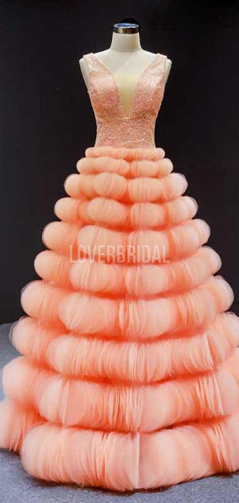 Unique V Neck Round Loops Ruffles Long Evening Prom Dresses, Evening Party Prom Dresses, 12243