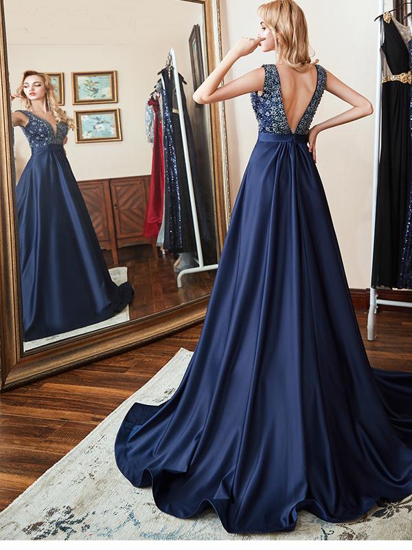 The Long Evening Prom Dresses are fully lined, there are bones in the bodice, chest pad in the bust, lace up back or zipper back are all available, it could be custom size and color, there are no extra cost to do custom order.