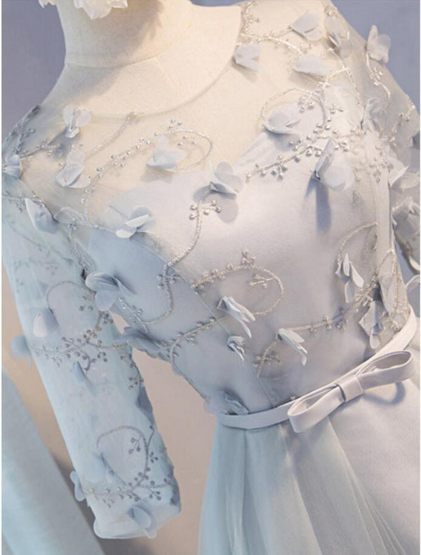 Gray Lace Long Sleeve Open Back Homecoming Prom Dresses, Affordable Short Party Prom Dresses, Perfect Homecoming Dresses, CM283