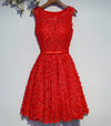 Red Lace Beaded Round Neckline Homecoming Prom Dresses, Affordable Corset Back Short Party Prom Dresses, Perfect Homecoming Dresses, CM253