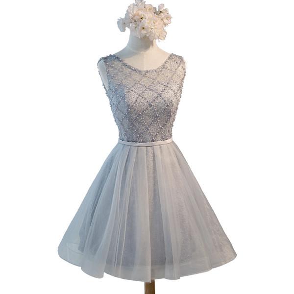 Sexy Open Back Grey Lace Beaded Homecoming Prom Dresses, Affordable Short Party Prom Dresses, Perfect Homecoming Dresses, CM286