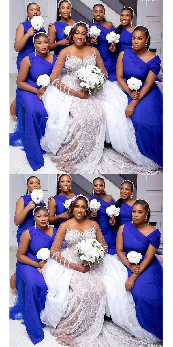 Royal Mermaid One Shoulder Cheap Long Bridesmaid Dresses,WG1186