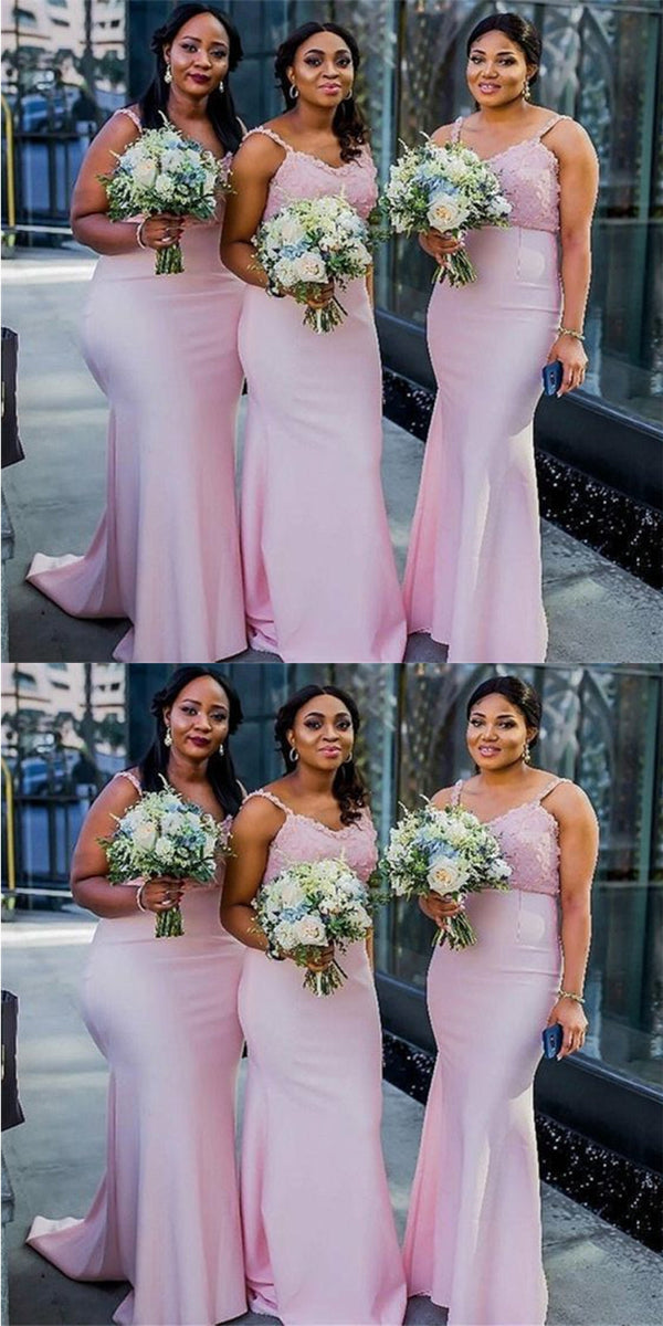 Elegant Pink Mermaid Straps Maxi Long Bridesmaid Dresses For Wedding,W