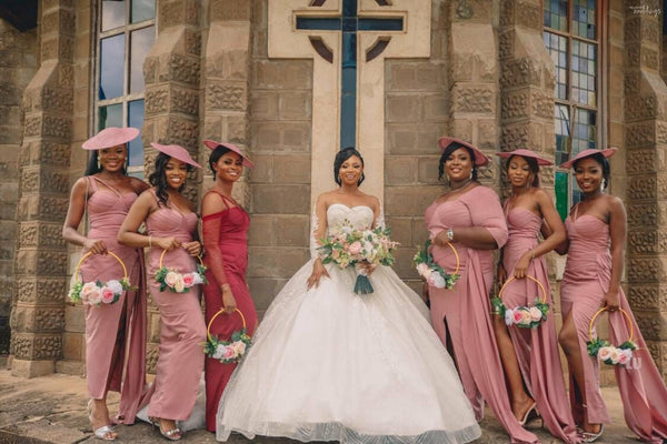 Mismatched Pink Mermaid High Slit Cheap Long Bridesmaid Dresses,WG1205