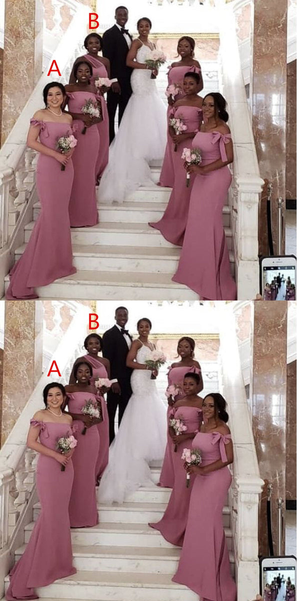 Mismatched Pink Mermaid Off Shoulder Cheap Long Bridesmaid Dresses,WG1174