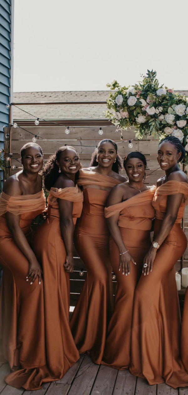 Orange Mermaid Off Shoulder Cheap Long Bridesmaid Dresses,WG1206