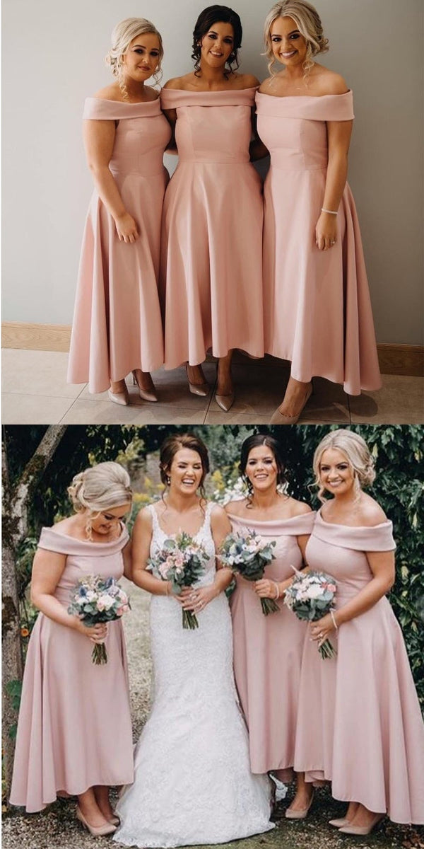 Pink A-line Off Shoulder Cheap Short Bridesmaid Dresses Online,WG1038