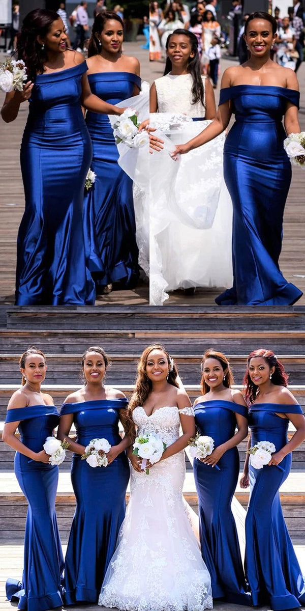Royal Blue Mermaid Off Shoulder Cheap Long Bridesmaid Dresses,WG1194