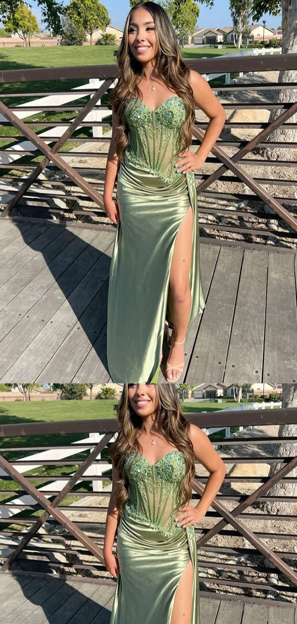 Sexy Green Mermaid Spaghetti Straps Maxi Long Party Prom Dresses,Evening Dress,13294
