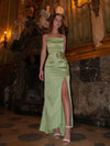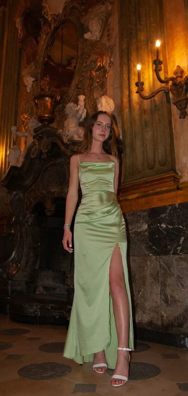 Sexy Sage Green Mermaid Spaghetti Straps Side Slit Maxi Long Party Pro