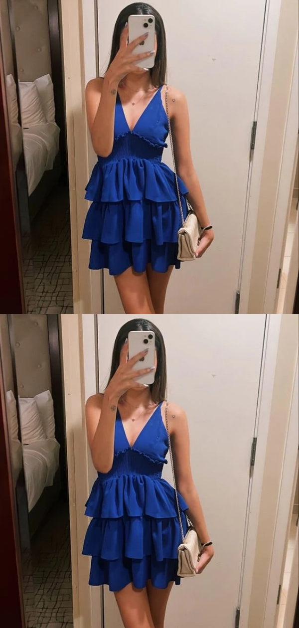 Sexy Blue A-line V-neck Mini Short Prom Homecoming Dresses Online,CM986