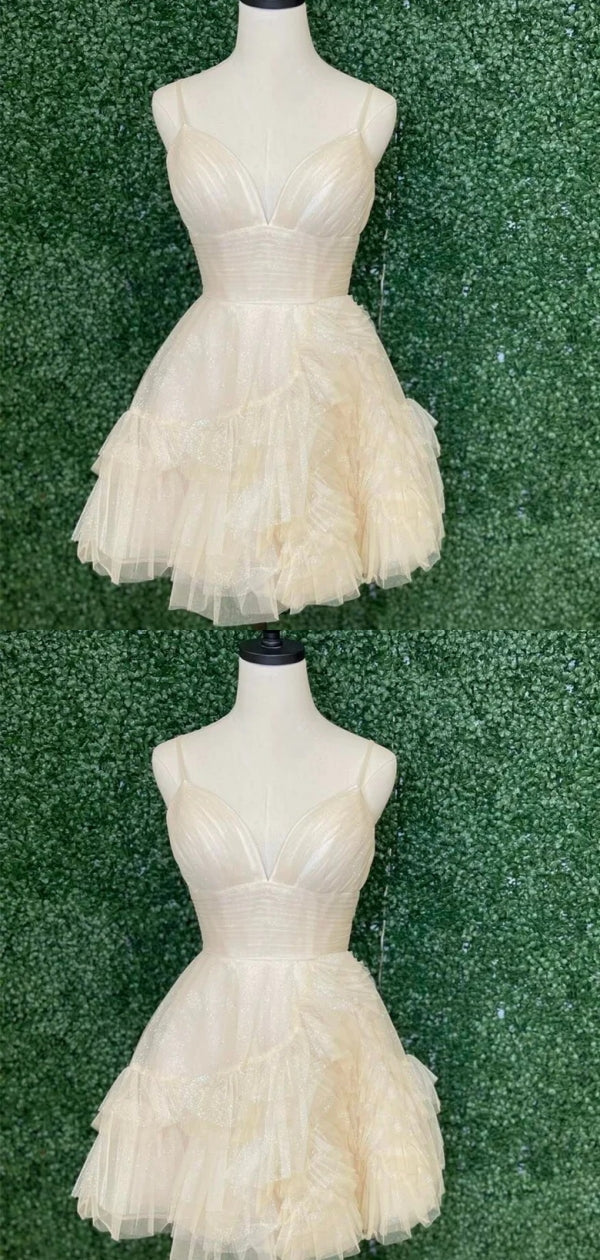 Sparkly A-line Spaghetti Straps V-neck Mini Short Prom Homecoming Dresses Online,CM979