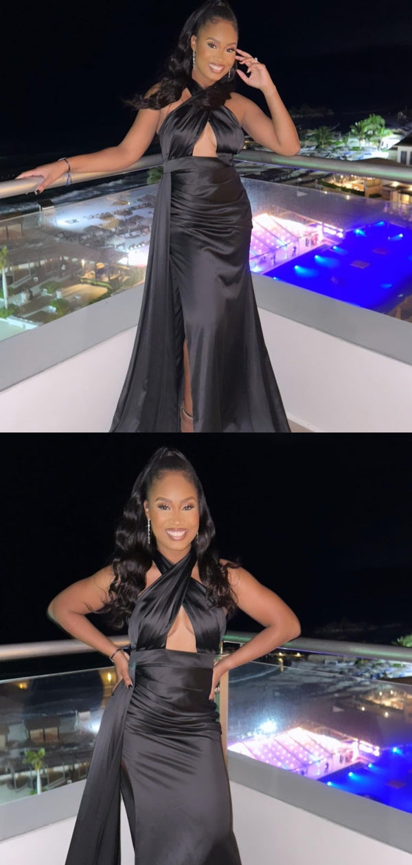 Sexy Black Mermaid Side Slit Maxi Long Bridesmaid Dresses For Wedding