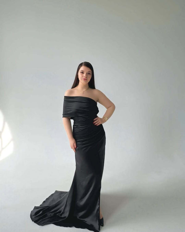 Sexy Black Mermaid Side Slit One Shoulder Mermaid Maxi Long Bridesmaid