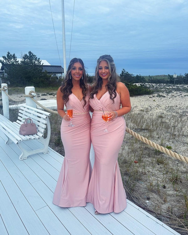 Sexy Mermaid Pink V-neck Mermaid Maxi Long Bridesmaid Dresses,WG1647