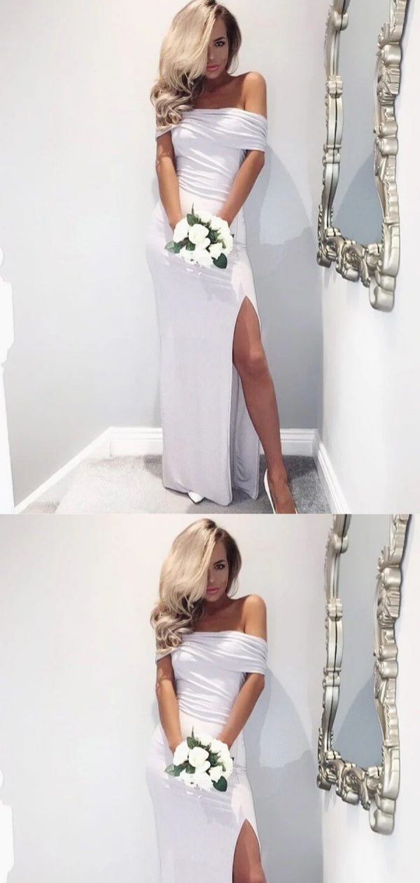 Simple White Mermaid Off Shoulder Maxi Long Bridesmaid Dresses For Wedding Party,WG1627