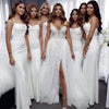 Simple White Mermaid Spaghetti Straps Maxi Long Bridesmaid Dresses,WG1513