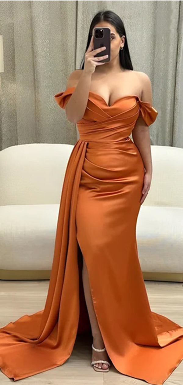 Sexy Burnt Orange Mermaid Off Shoulder Maxi Long Bridesmaid Dresses For Wedding,WG1572