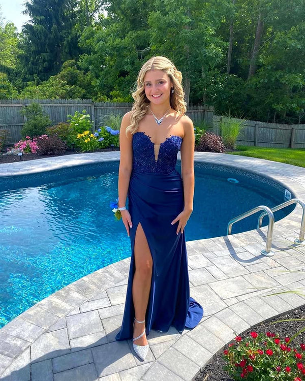 Elegant Blue Mermaid Side Slit Long Party Prom Dresses To Impress,Evening Dress,13503