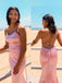 Sexy Pink Mermaid Spaghetti Straps Side Slit Maxi Long Party Prom Dresses,13249