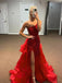 V Neck Simple Red A-line Long Evening Prom Dresses, Evening Party Prom Dresses, 12332