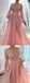 Cute Pink A-line V-neck Long Sleeves Maxi Long Party Prom Dresses,1308