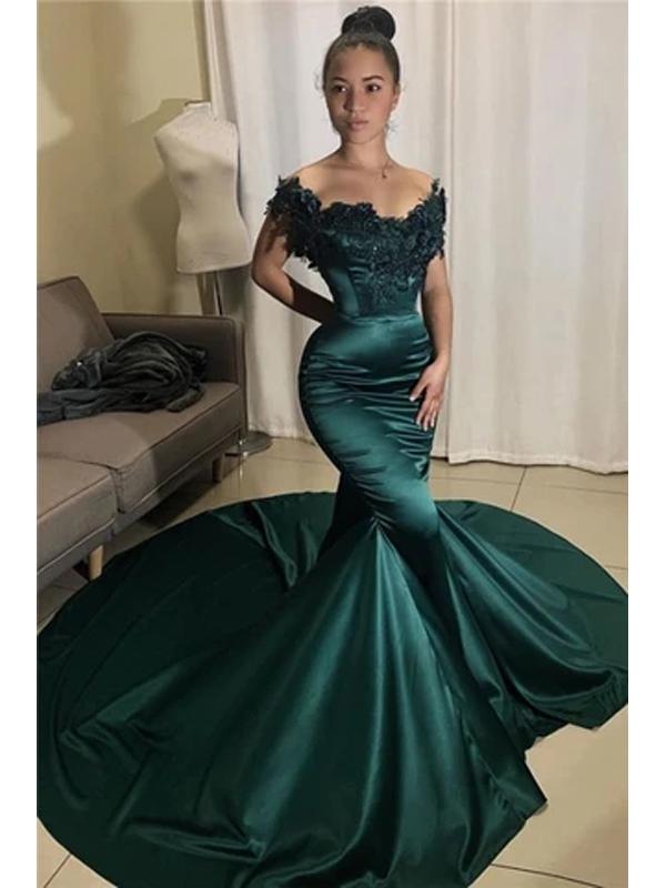 Sexy Emerald Green Mermaid Off Shoulder Long Prom Dresses Online,12544