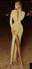 Sexy Yellow Mermaid Long Sleeves V-neck Side Slit Maxi Long Party Prom Dresses,13099